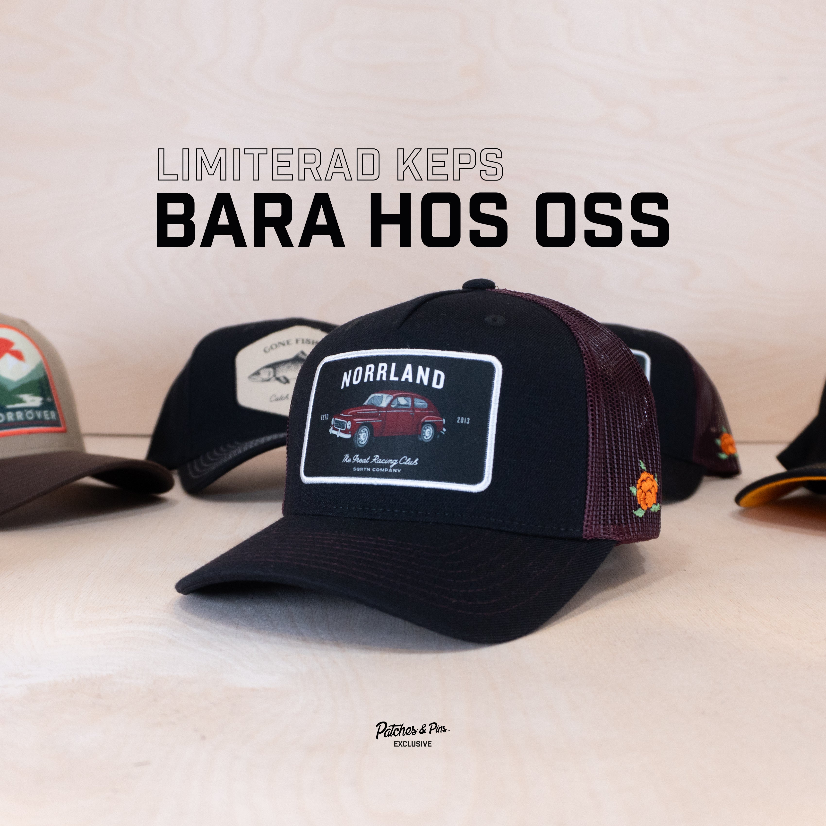 🟡 Unik kollektion: Denna keps är resultatet av ett samarbete med Sqrtn Company och finns endast hos Patches & Pins. Perfekt för dig som älskar norrlandskultur, klassiska bilar och vill bära något som inte alla andra har.