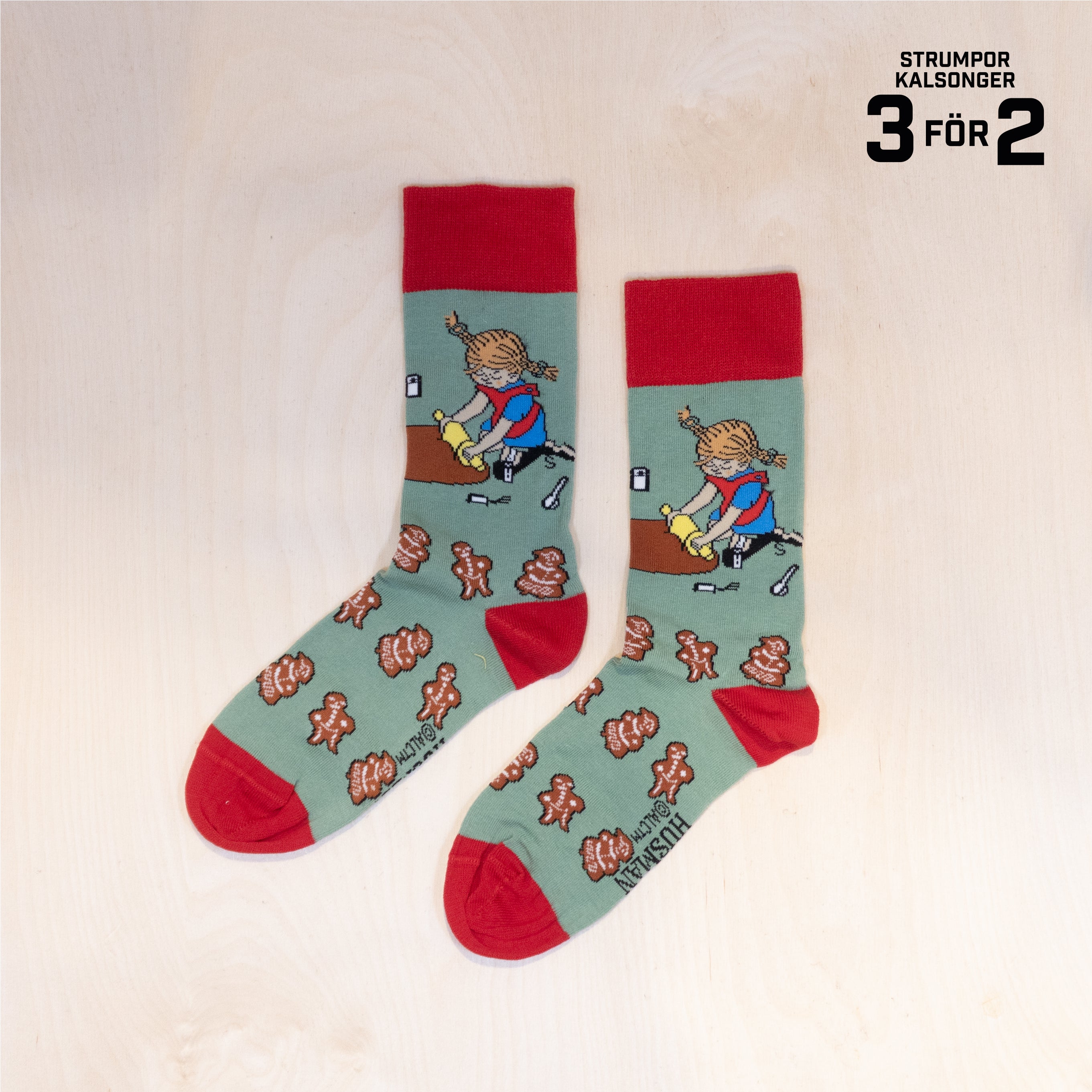 Svensk Husman Pippi Bakar Pepparkakor Strumpor Green